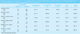 Tanı testlerinin değerlendirilmesinde sensitivite, spesifite, PPV, NPV ve uyumluluk yüzdesi hesaplanmıştır.