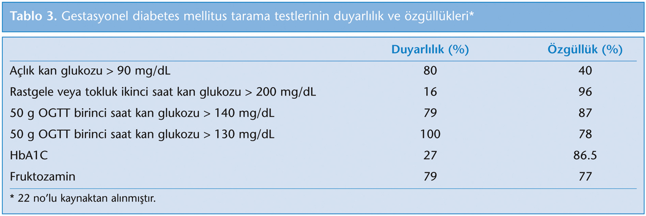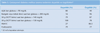 Tanıda diğer testlerin (HbA1C, fruktozamin, açlık ve tokluk kan şekeri) duyarlılıkları düşük olduğundan rutin kullanılmaları önerilmemektedir (Tablo 3) (22).